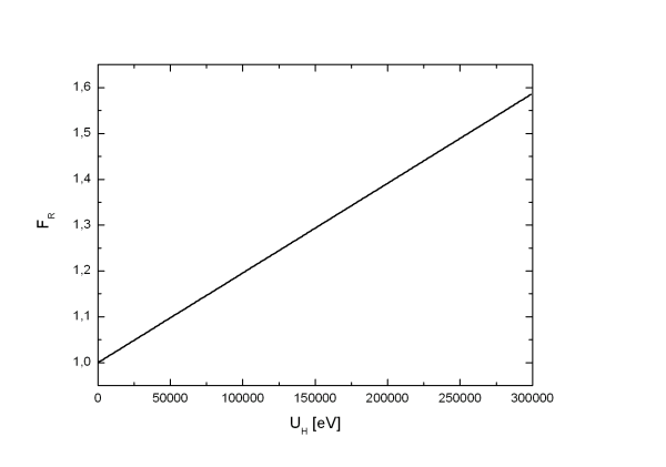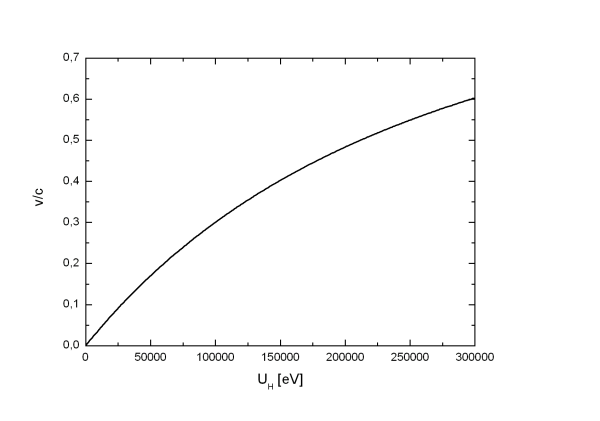 Für Elektronen mit einer Beschleunigungsspannung von UH=-68keV ist dieser Faktor 1,133 (v/c=0,47). Für UH=-200keV (Schultze) ist der Faktor 1,391 (v/c=0,69).